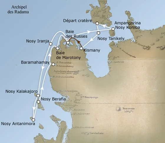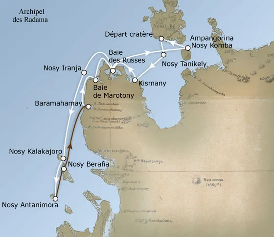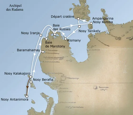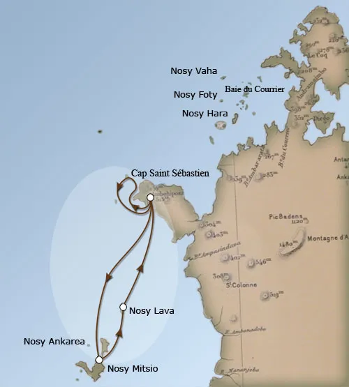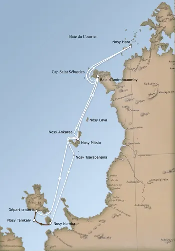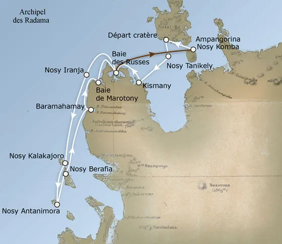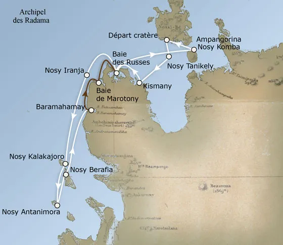 pour explorer l’Archipel somptueux de cette baie. Du mouillage sécurisé de Nosy Hara, les îles sont à quelques milles nautiques et se font à la journée.