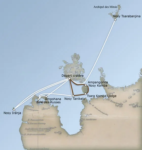 Ilot le plus Sud de l’Archipel, il est composé de blocs basaltiques. Son ascension est facile et permet de découvrir un panorama à 360° embrassant l’ensemble de la Baie du Courrier, la montagne d’Ambre et les îlots de Nosy Hara.